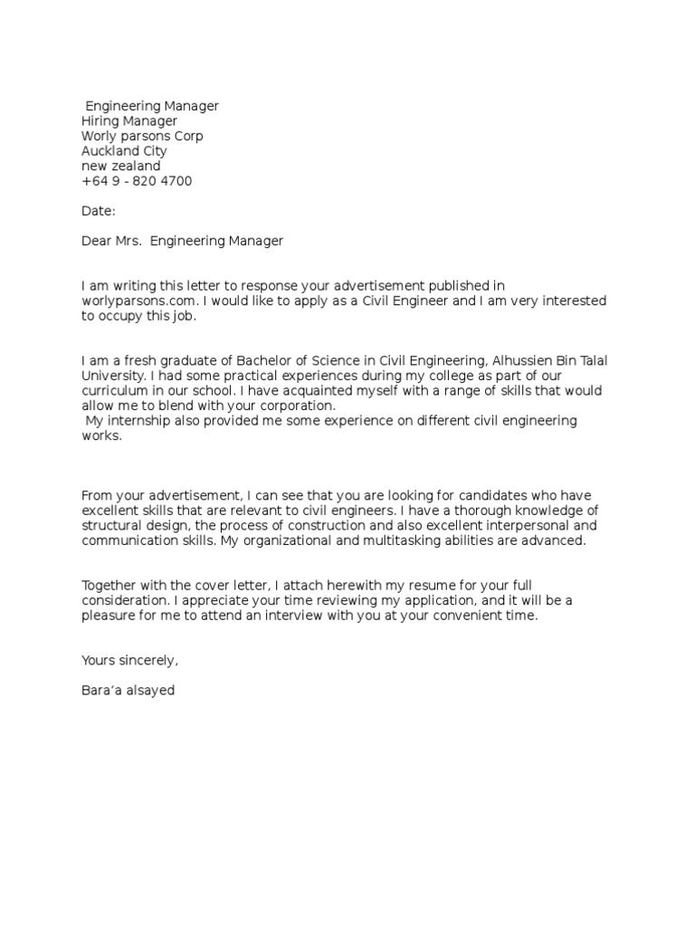 Cover Letter For Civil Engineering Fresh Graduate, Cover Letters For Civil Engineering Internships