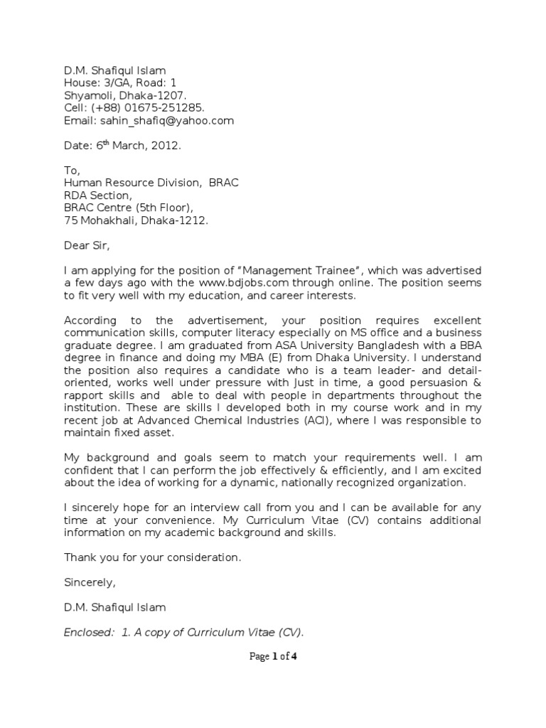 - Job Cv Cover Letter Format Bd