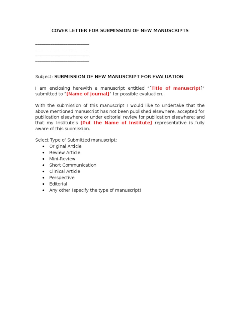- Cover Letter For Submission Of Manuscript