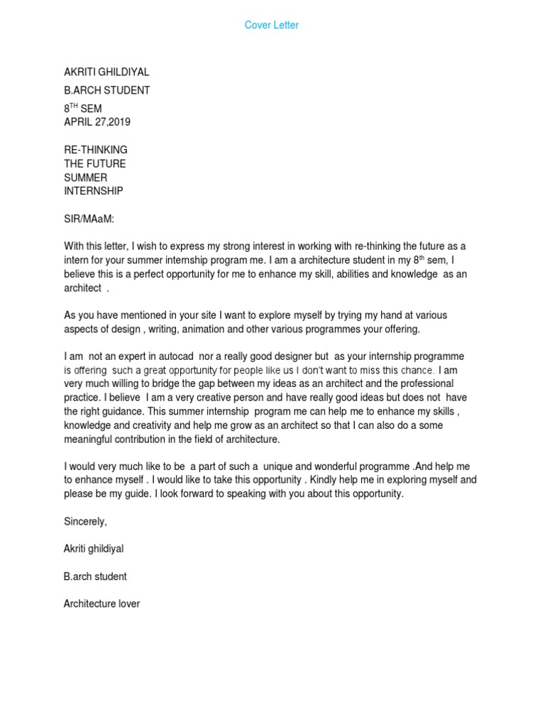 - What Should Be The Content Of A Cover Letter While Applying For Summer Internship In The Field Of Engineering And Research Quora Cover Letter Tips Uk,