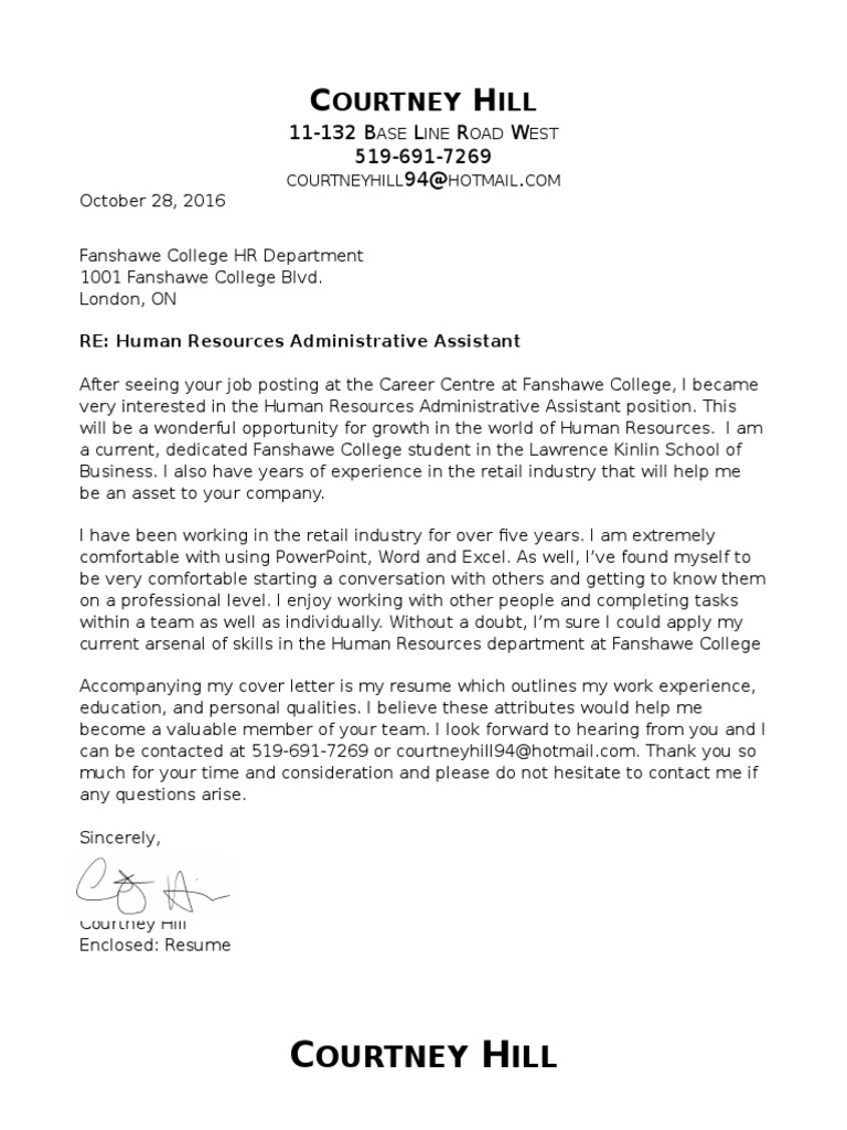 Cover Letter And Resume Hr Generalist Courtney Hill Human Resource Management Cognition Cover Letter Doctor Example