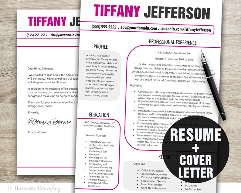 Professional Resume Instant Download Resume Download Cover Letter Template Modern Pink Design Resume Template Purdue Owl Cover Letter Example