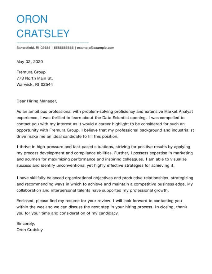 Data Science Cover Letter Example, Best Cover Letter Templates For 2020